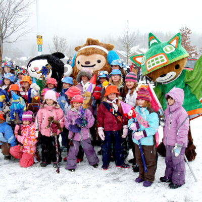 The Vancouver 2010 mascots at one of the many community events in the Sea to Sky Corridor, engaging residents and building excitement for the Olympic and Paralympic Winter Games.